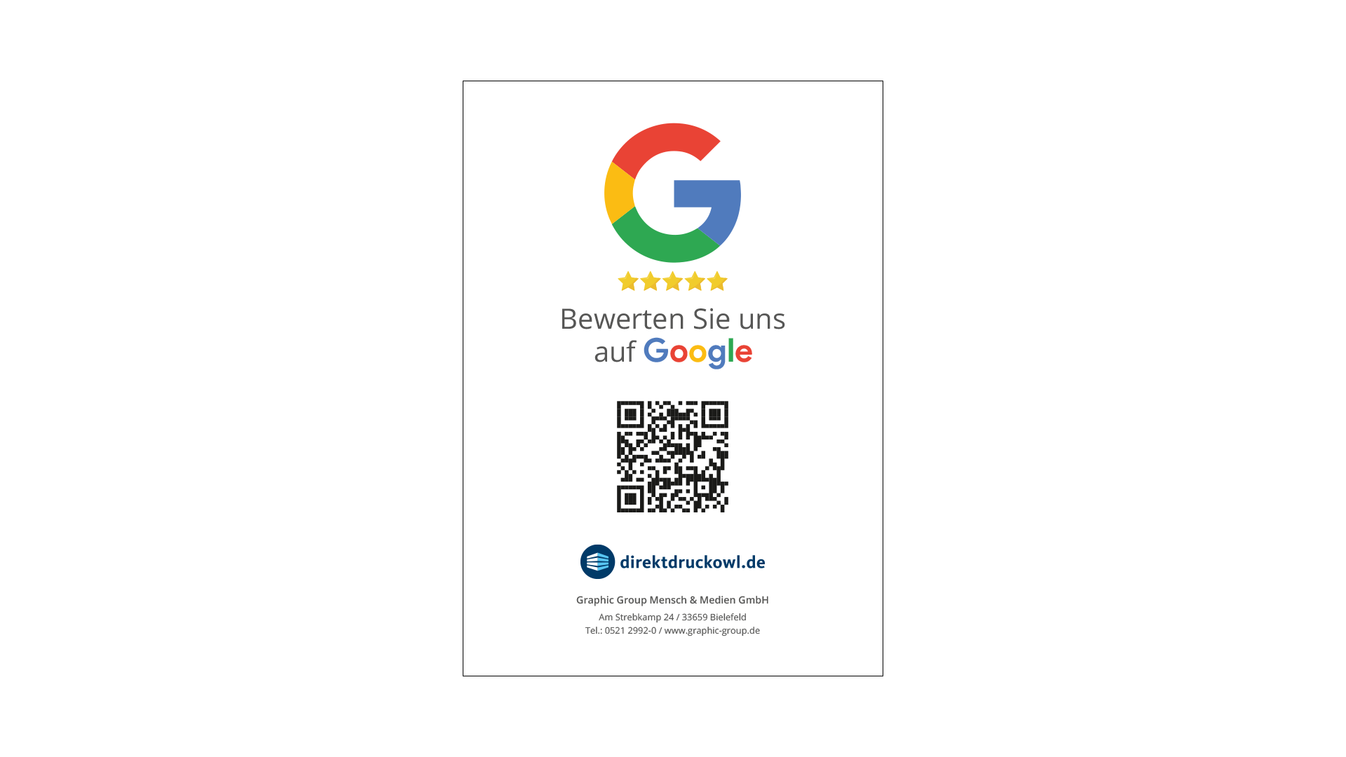 Ob in Ihrem Ladengeschäft, auf Messen oder Veranstaltungen – diese Aufsteller sind die perfekte Möglichkeit, um Kundeninteraktion zu fördern und gleichzeitig Ihr Online-Ansehen zu verbessern. Nutzen Sie die Kraft der digitalen Mundpropaganda und steigern Sie Ihre Präsenz in den Suchergebnissen von Google!